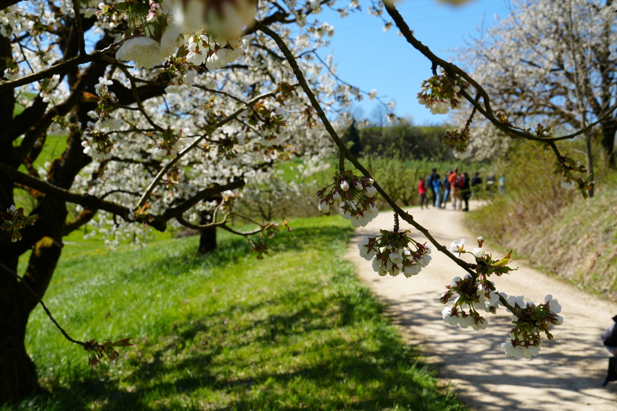 Alternative Routen: Zur Kirschblütenzeit (Ende März bis Ende April) ist der Fricktaler Chriesiwäg sehr gut besucht. Wir empfehlen deshalb das Ausweichen auf andere Routen, die ebenfalls durch wunderschöne Kirschbaum-Landschaften führen: www.jurapark-aargau.ch/fruehlingstipps