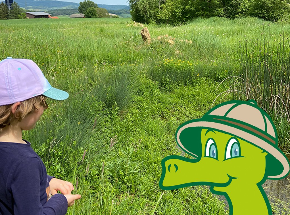 Perimuk der Jurasaurier möchte die verborgenen Naturschätze rund um das Dorf Herznach kennenlernen. Kommt ihr mit?