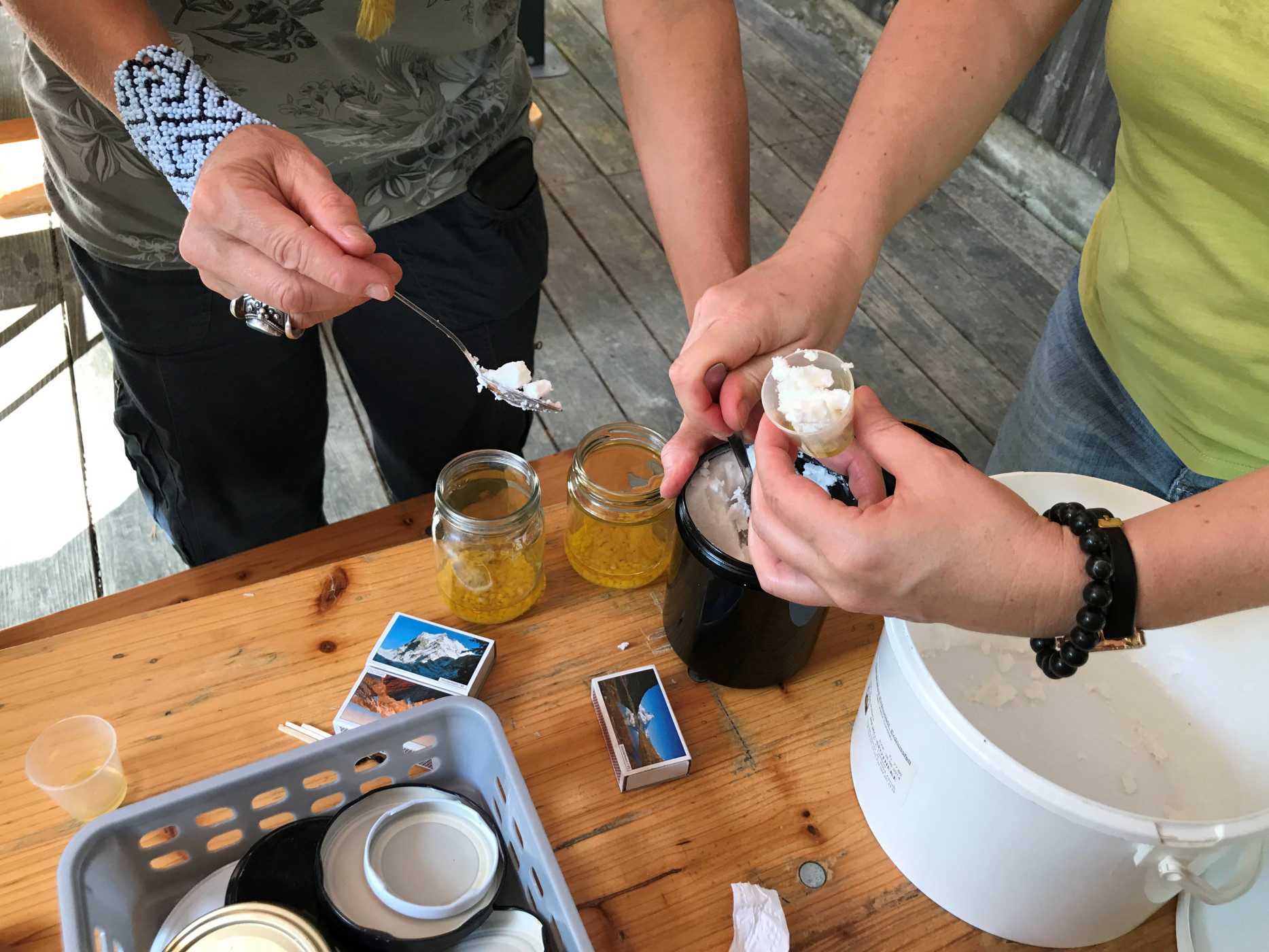 Als Einstieg wird in einem Rundgang die Goldrute gesammelt (Neophytenbekämpfung). Die Teilnehmenden destillieren daraus anschliessend ihr eigenes Hydrolat und stellen verschiedene Pflegeprodukte her.